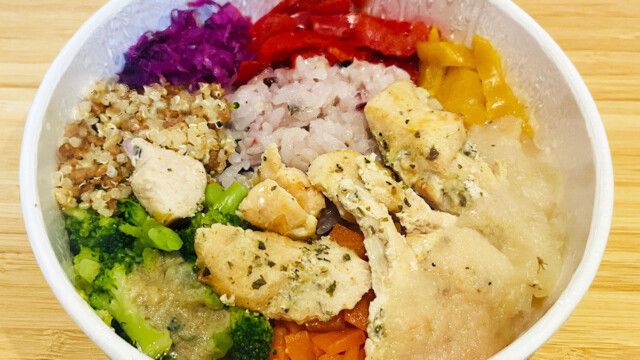 野菜以外にも栄養価の高い雑穀米を使用していたり、たんぱく質となる鶏肉も入っていたりとバランスよく栄養が摂れる一品となっています。